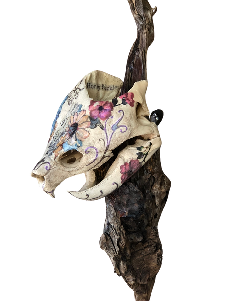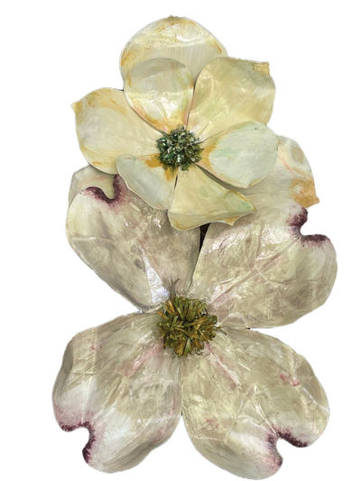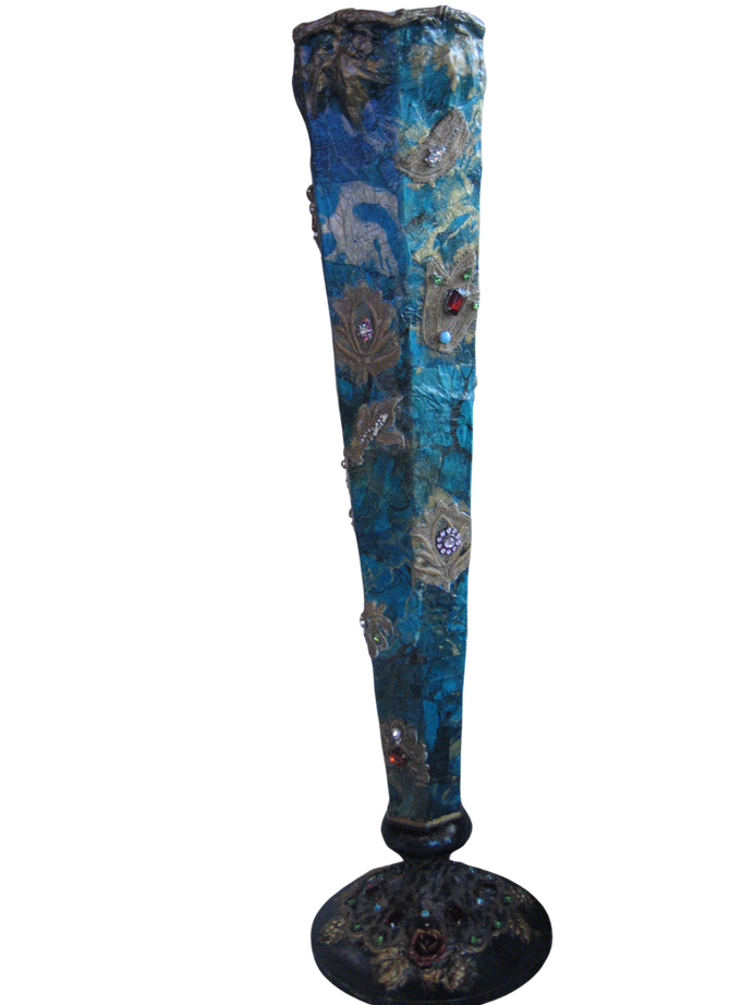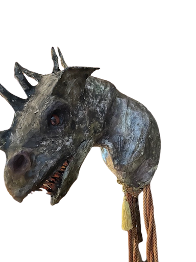 During the 2020-2021 pandemic shutdown I was able to expand my works to include papier mache dragons, paper clay & transfers on mannequins and furniture, magic wands, large Mardi Gras float type flowers, and corpsing skeletons.