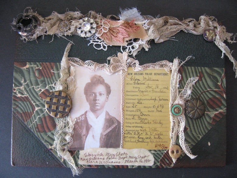 As my curiosity grew about the Women of Storyville, I discovered the mugshot collection of the New Orleans Police Dept. from the early 1900s. As an activitist for women’s rights, I was drawn to the many mug shots of women arrested for questionable reasons such as “sneak thief” and “suspicious person”, or my favorite, “street walking.” Equally compelling were the mugshots of the men.